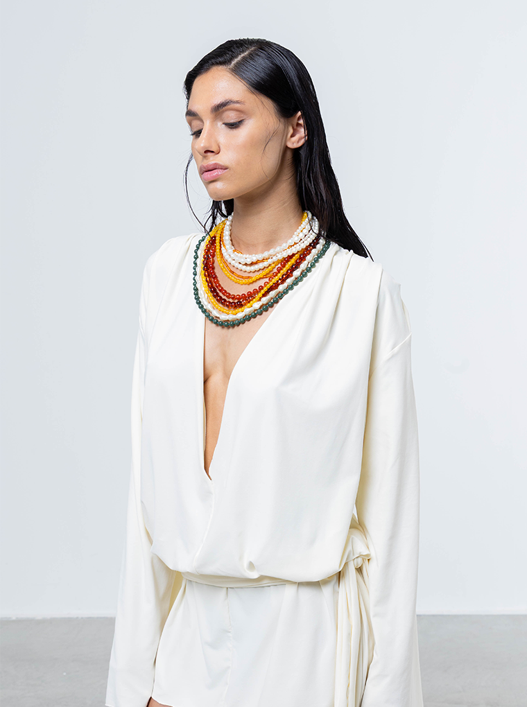 A summer lived with style, comfort and authenticity. Three lines inspired by different shades of femininity: from the sober refinement of “Timeless Grace”, to the brilliant energy of “Sparkling Nights”, to the warm elegance of “Arabian Glow”. Each piece – from swimsuits to beachwear – is designed to enhance the curves without constraints, thanks to soft, supportive fabrics and a studied fit. The color palettes range from cream to burgundy, from coral to light blue, to accompany every woman in a free, bright and unforgettable summer.